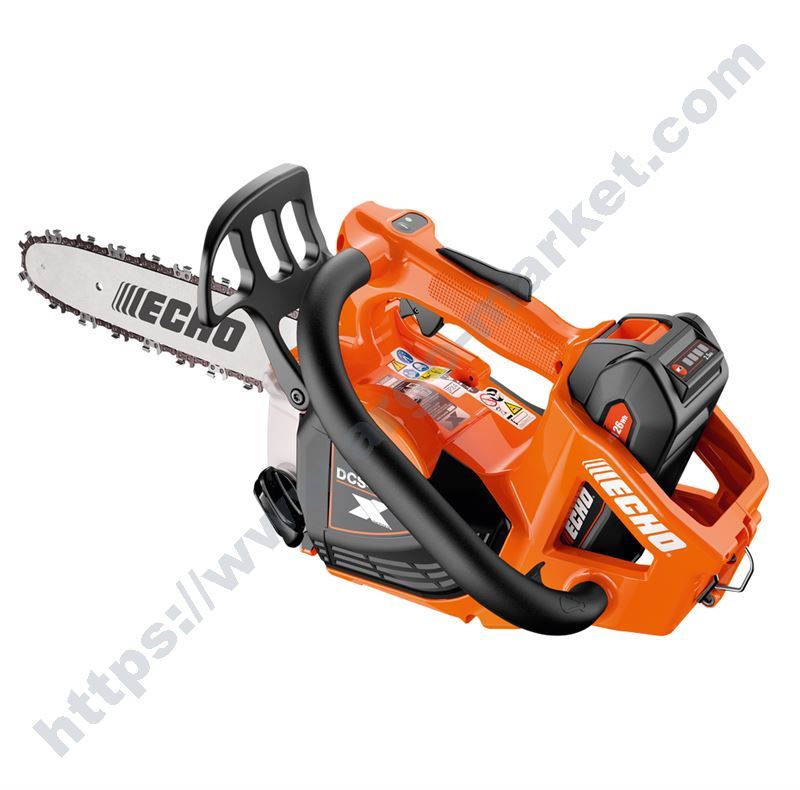 Професионален акумулаторен трион Echo, 56 V, стъпка на веригата 0,325, 1,1 мм, шина 35 см, тегло 2,2 кг, работа до 25 минути с 2,3 Ah, до 51 минути с 4,5 Ah, цената не включва батерия и зарядно, произход 100% Япония.