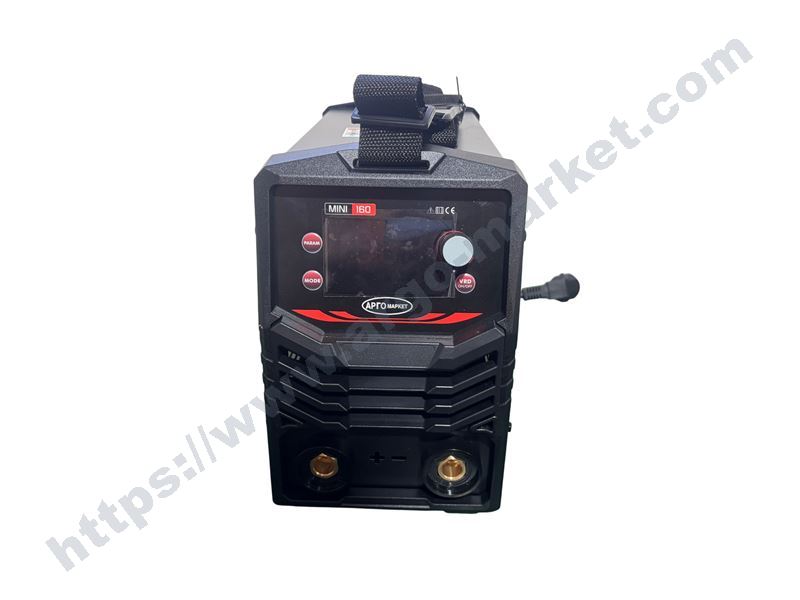 Инверторен електрожен, монофазен 230 V±15%/50 Hz, 20 - 160A, ПВ при 160А - 60% при 40 градуса, в комплект с 5 метра меден кабел 16 мм2 за маса и 5 метра меден кабел 16 мм2 с ръкохватка 300А, чукче и маска, горещ старт и функция против залепване, функция Arc Force за динамично регулиране на дъгата за лесно запалване, автоматична V.R.D. функция за намаляване на напрежението на празен ход, възможност за работа с генератор (минимум 4,2 kW), в пластмасов куфар, месингова щипка 300А, размери на машината 340 х 155 х 240 мм и 5,2 кг, размери с кашона, куфара и кабелите 550 х 200 х 440 мм и 10,7 кг, гаранция 48 месеца за физически и 24 месеца за юридически лица, произход Китай.