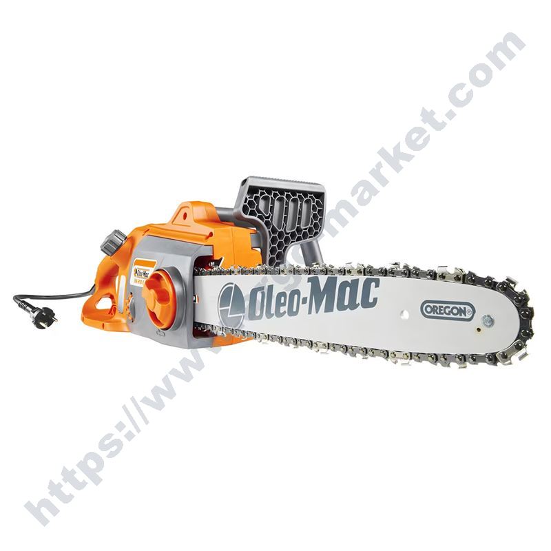 Електрически трион Oleo-mac, мощност 2 kW, шина 16 инча, 41 см, автоматична маслена помпа, обем на масления резервоар 0,35 л, верига 3/8 x 1.3 мм, 56 звена, ниво на вибрация лqва/дясна ръка 6,3 / 6,3 м/сек2, тегло 4,1 кг, произход Италия / Китай.