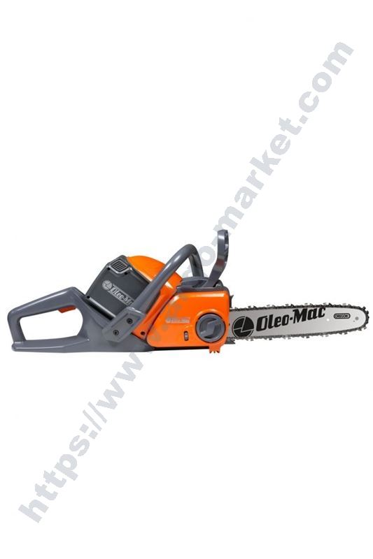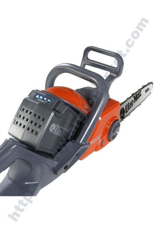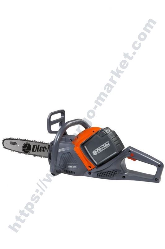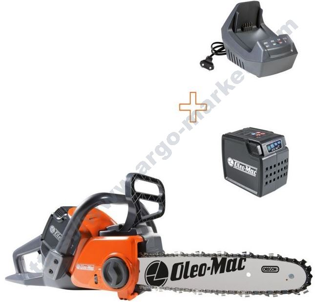 Акумулаторен трион Oleo-Mac, 40 V, в комплект с батерия 5 Ah и зарядно, време за работа около 160 сряза, дължина на шината 12 инча, 30 см, верига 3/8, 1,1 мм, тегло 2,8 кг, произход Италия/Китай.