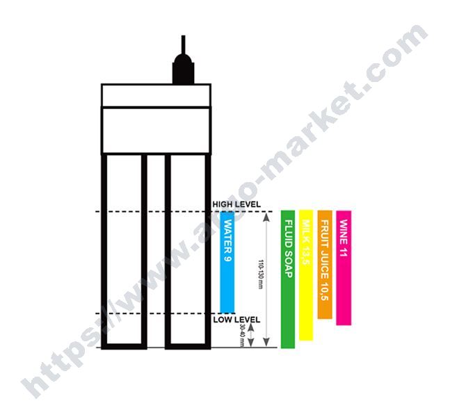 Mac3 магнитен ниворегулатор Reka 2000, дължина на кабела 0,4 м, използва се когато няма място за сонди и поплавъци, подходящ за вода, вино, сокове и други, максимална дълбочина на потапяне 5 метра, произход Италия.