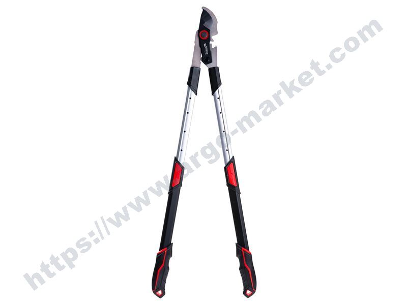 Телескопична ножица за клони 715 - 955 мм, материал 65Mn, максимален диаметър на рязане 35 - 40 мм, зъбчат механизъм, гумирани ергономини дръжки, произход Китай.