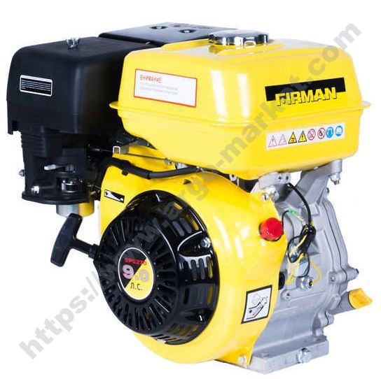 Двигател Firman, 4-тактов, бензинов, едноцилиндров, въздушно охлаждане, обем 270 см3, мощност 9 конски сили при 4000 об/мин, разход 0,35 литра на конска сила на час, резервоар 6 литра, масло 1,1 литра, центробежен съединител, 1/2 редуктор, извод на вала на шпонка 25 мм, размери 460 х 480 х 460 мм, тегло с кашон 25 кг, произход Китай.