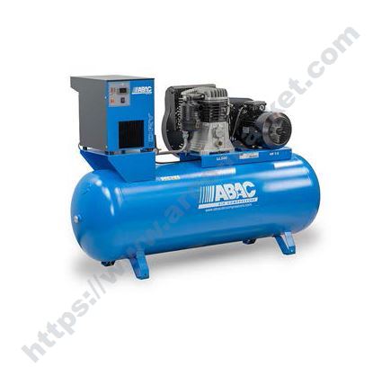 Въздушен бутален компресор ABAC, трифазен 400 V/50 Hz, въздухосъдържател 500 литра, компресорна глава ABAC, дебит 827 литра/мин, мощност 5,6 kW, 7,5 HP, налягане 11 бара, вграден изсушител, размери 2 030 х 670 х 1 400 мм, тегло 290 кг, произход Италия.